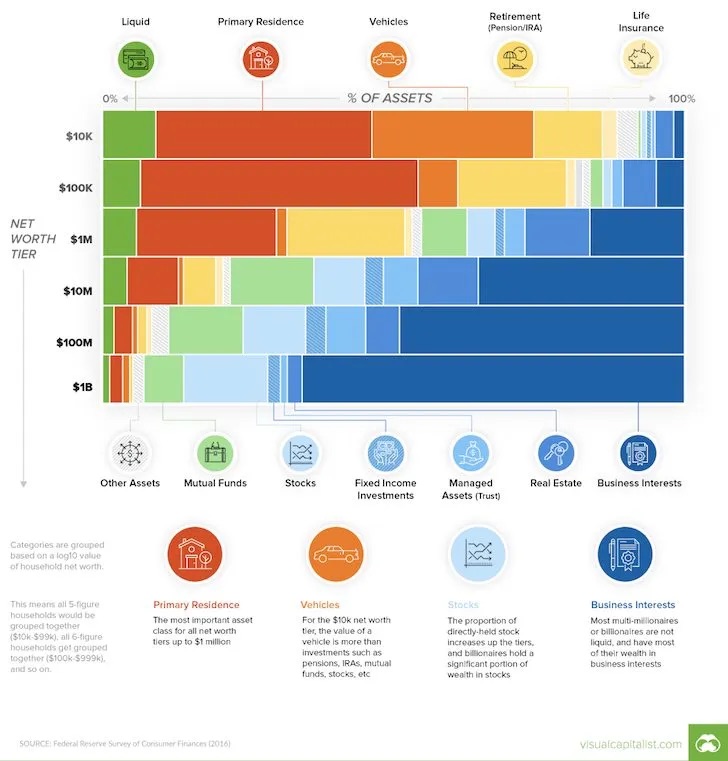 In conclusion, the data visualization of asset breakdown across wealth tiers provides a fascinating glimpse into the wealth-building strategies of the ultra-rich. By understanding and selectively applying these insights to our own financial lives, we can work towards making our money work harder and smarter, just like the wealthiest among us. We will go deeper into these concepts in the coming days.